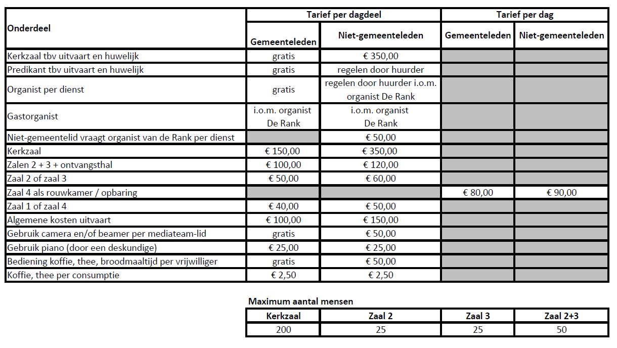 Voor het gebruik van zowel de kerkzaal als de nevenzalen is er een gebruikersreglement.